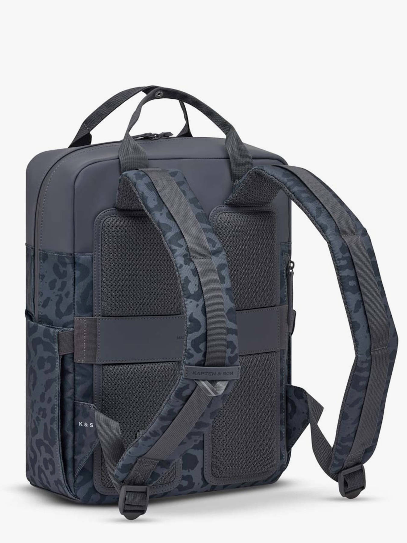 This backpack from the brand KAPTEN & SON is the perfect companion for an organized daily life with a trendy touch. Made from recycled PET, it combines durability and environmental friendliness without sacrificing style. Its modern design is enhanced by a leopard print pattern. Practical and well thought out, it features a zippered front pocket on the outside to keep your small essentials within easy reach. Its adjustable shoulder straps offer optimal comfort when worn on the back, while the top handle allows for easy hand carrying. The interior is spacious and functional, with a main compartment suitable for A4 documents, a slip pocket, a zippered pocket, and a dedicated compartment to protect a laptop up to 15 inches. A decidedly chic and practical backpack, ideal for expressing your style every day.
