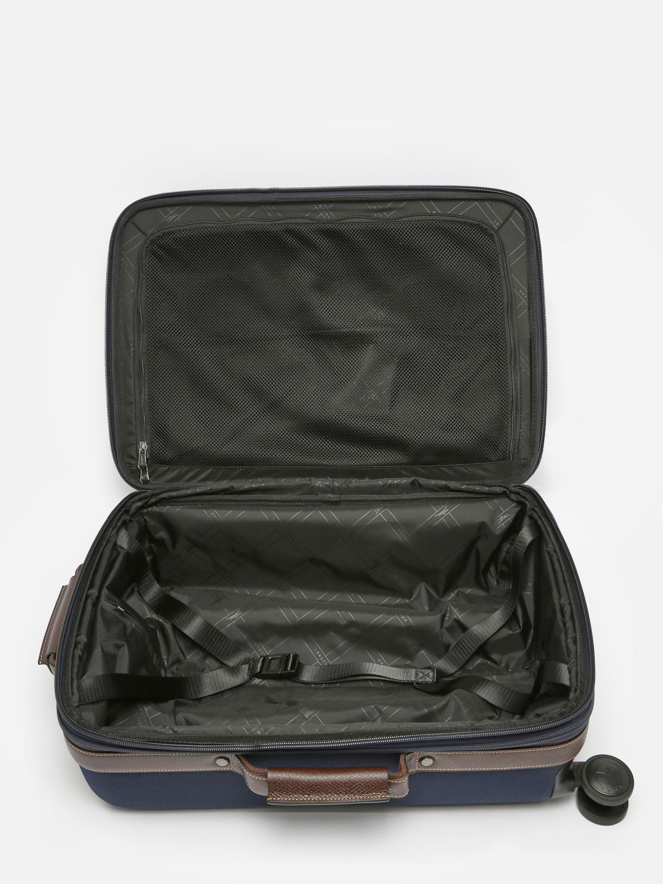 Made from designer thermoformed canvas, this elegant Longchamp suitcase is crafted in an innovative style for long-lasting durability. Enjoy the comfort of its adjustable telescopic handle, the security of its TSA padlock and an expandable gusset for last-minute purchases. BOXFORD is the emblematic line of the House, embodying discreet elegance. Sober and distinctive, its men's and business bags and luggage models feature rectangular Longchamp branding embossed in the leather and contrasting stitching for a refined look, while the two-tone canvas is trimmed with Russian leather for a rich embossed effect.